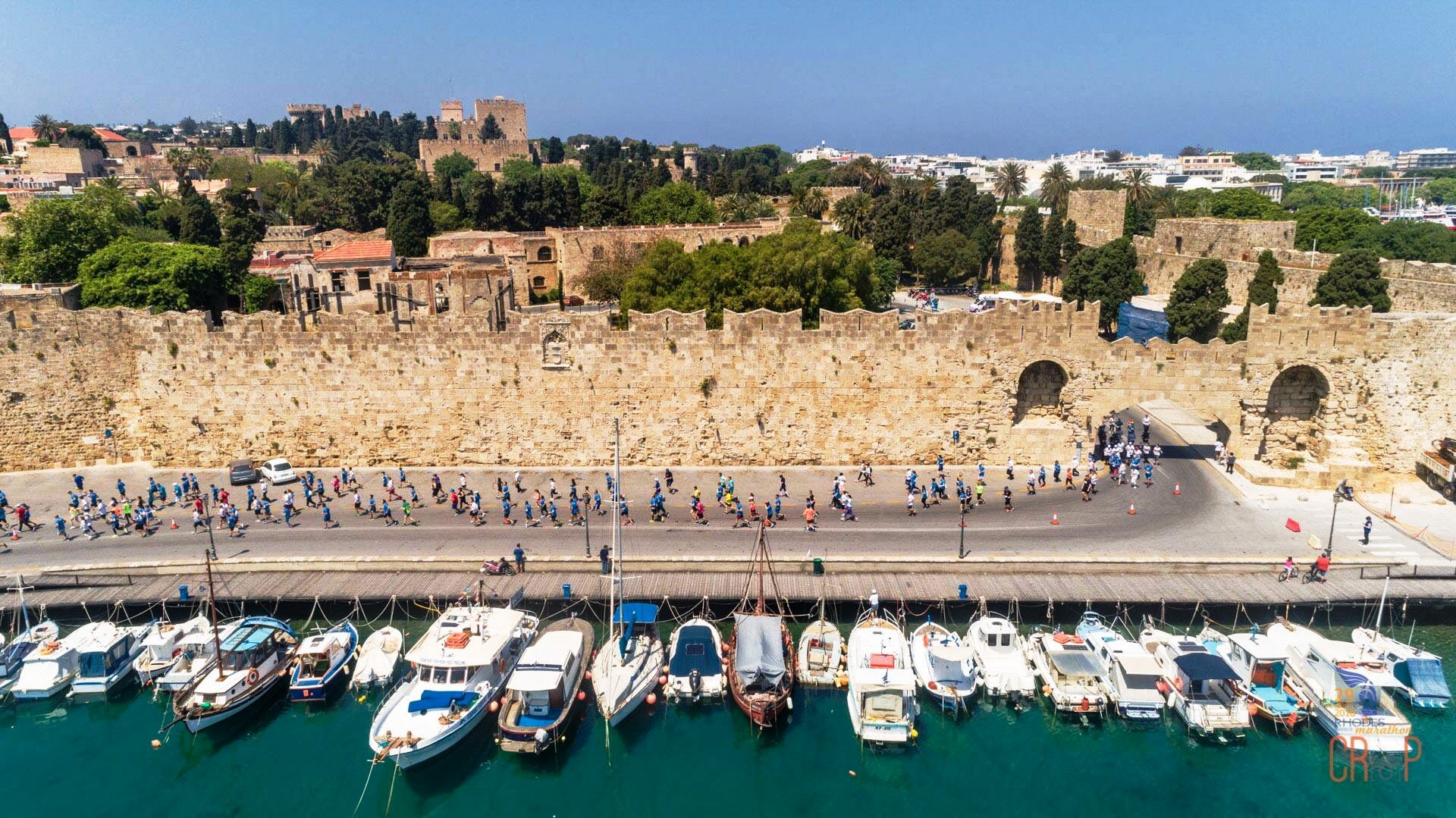 κάθε ρεκόρ στις συμμετοχές, ενώ υπάρχουν και εκπληκτικές λήψεις από drone, που αναδεικνύουν ομορφιές της Ρόδου, σε συνδυασμό με το «ποτάμι» των δρομέων που τρέχουν γύρω από αυτές.